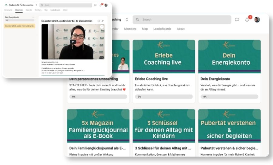 Zugriff auf Videokurse und Übungen aus Kiras Ausbildung, die du sonst nirgendwo bekommst: Zu Themen wie Pubertät verstehen, Kommunikation mit Kindern oder dem richtigen Umgang mit Grenzen.